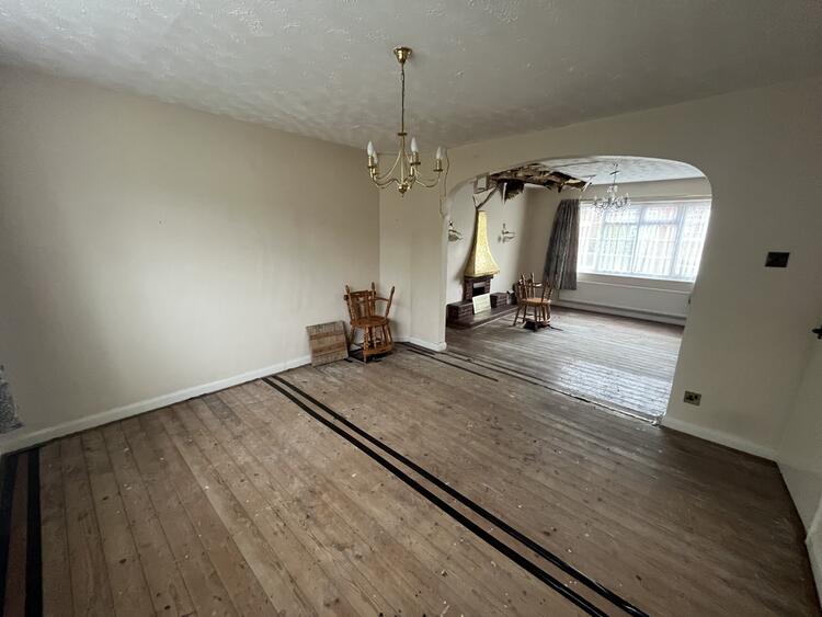 With radiator, open grate fireplace and window to front. Arch way to Dining Room / Bedroom 3.
