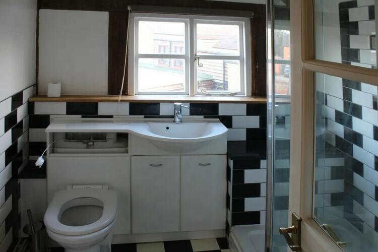 Directions: Proceed west from Market Square along Cross Street. The property is the second house on the left with a blue door. Access via the red door into a covered walkway where the side door leads to the kitchen