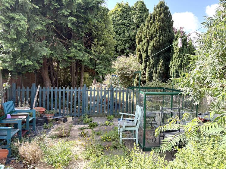 The property is positioned towards the end of the cul-de-sac with hard standing. To the side there is pedestrian access leading to a large enclosed garden with range of specimen trees.