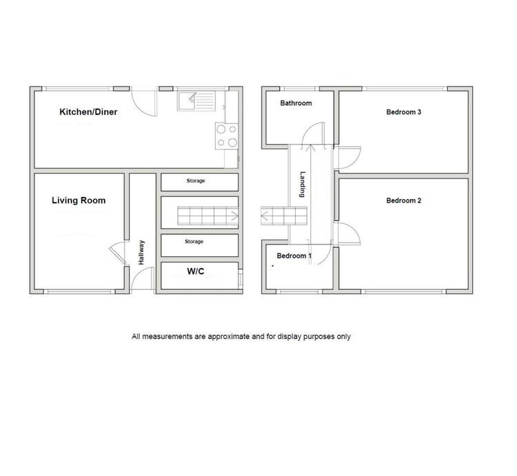 Lounge, open plan kitchen/diner, WC.
