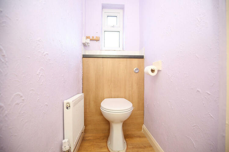 Opaque double glazed window to side aspect, single panelled radiator and a low level WC.