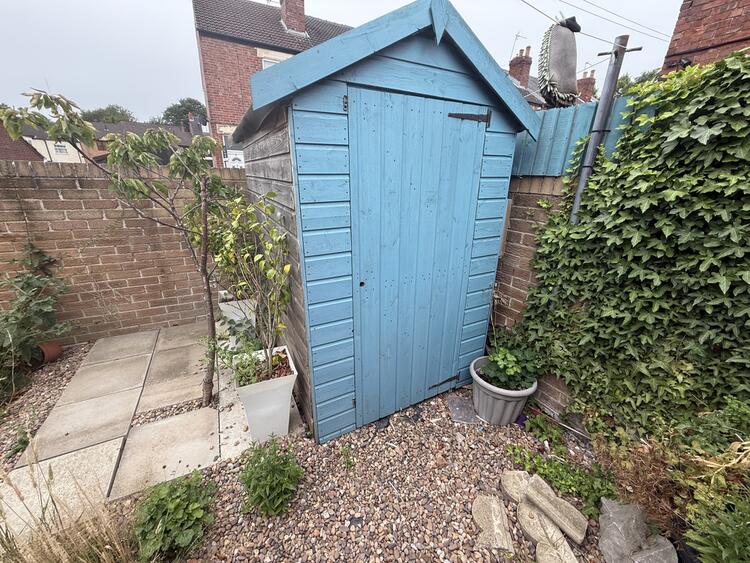 Externally, there is a private rear garden complete with a garden shed, and at the front, a gated lawn that has the potential to be converted into a driveway.