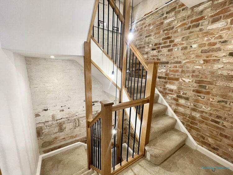 Stairs to the second floor, exposed brickwork and door to;