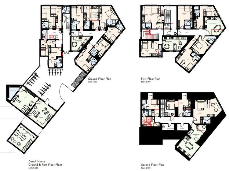The plans allow for 11 of the studios to have their own kitchenette and there are four separate communal kitchen and lounge areas over the three floors.