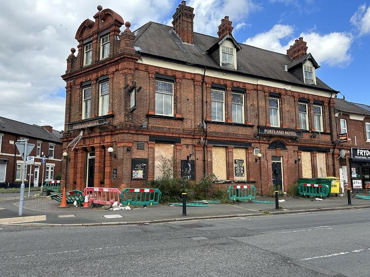 The property, originally the Portland Hotel and public house is a substantial building on a corner plot of three storey traditional brick construction with attractive exterior including feature brickwork and mouldings. There are wooden casement windows with some retaining original stained glass detailing on the first floor windows on the front elevation.