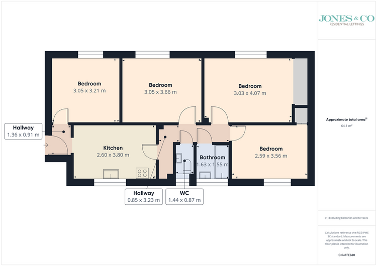 The accommodation includes four well-proportioned bedrooms (sitting room used as a bedroom), a fitted kitchen and a bathroom with separate WC. Residents benefit from communal parking and well-maintained shared areas.