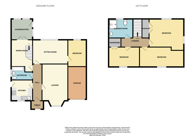 Front garden laid to lawn. Driveway and single attached garage. Enclosed rear garden with patio, lawn and timber shed.