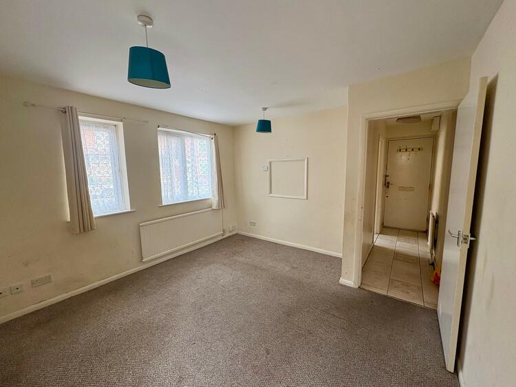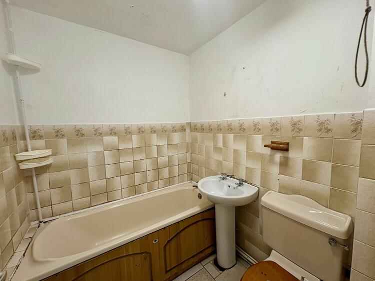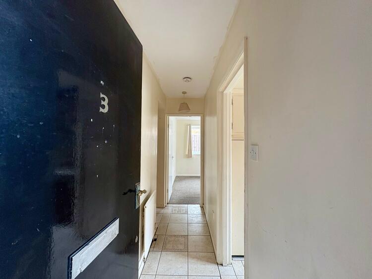 A two bedroomed ground floor flat in purpose built block in need of cosmetic improvement.