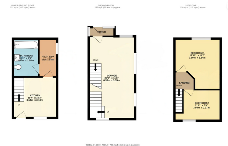 This 300-year old cottage offers kitchen, utility and modern bathroom to the lower ground floor with large living room and entrance porch to the ground floor. To the first floor are two double bedrooms.