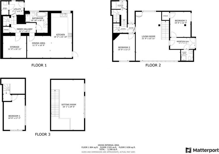 To the ground floor there are two double bedrooms, and two modern shower rooms. A third bedroom is situated on the first floor and accessed via a second staircase.