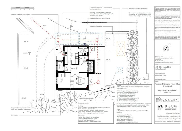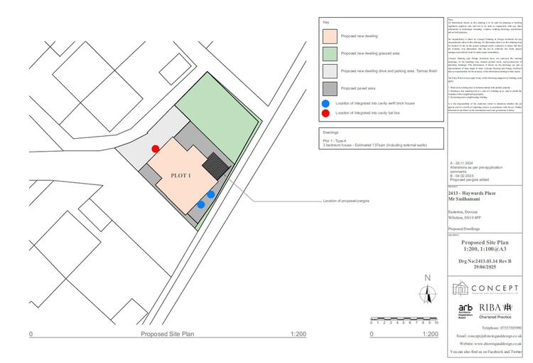 Plans are drawn up showing a detached dwelling with associated parking and landscaping. Interested parties are advised to inspect the legal pack and the planning portal of Wiltshire Council (PL/2024/10961) for more information.