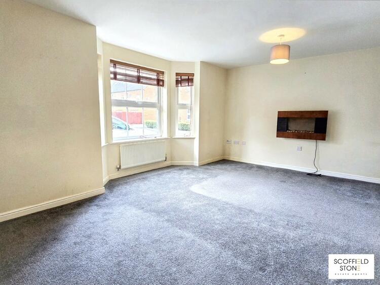 The apartment features a generous lounge/diner with a bay fronted window that allows natural light to flood the space, creating a bright and comfortable living area. The fitted kitchen is well‐appointed with modern wall and base units, stone‐effect worktops, integrated oven with gas hob, and space for appliances. There are two double bedrooms, the principal of which includes fitted wardrobes and French doors opening onto a Juliette balcony. A bathroom fitted with a white three‐piece suite and shower over bath completes the accommodation. Additional benefits include gas central heating, uPVC double glazing, intercom access, and ample storage.