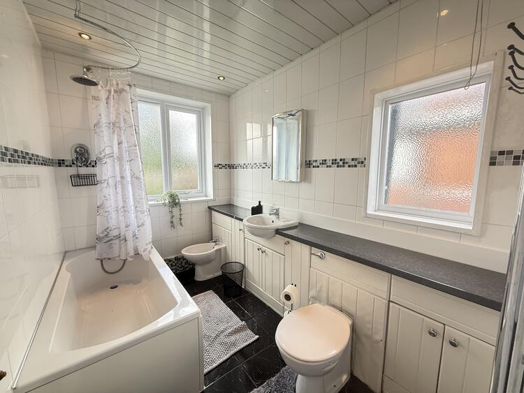 To the first floor is two double bedrooms, one single bedroom, and a family bathroom equipped with a white four-piece suite, including a shower over the bath.