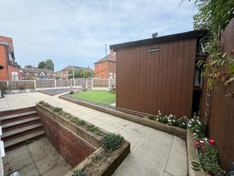 Externally, the property features a landscaped front garden with a low-maintenance lawn, flower beds, and an attractive slate-chipped area. Additionally, there are two sheds for extra storage and a carport situated just outside the fenced area.