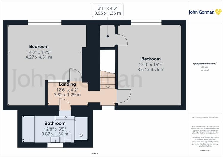 On the first floor, the landing leads to both bedrooms and the bathroom. Bedroom