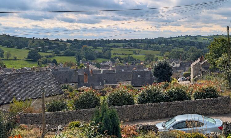 Brassington and the surrounding landscape, with a further lawned garden bordered