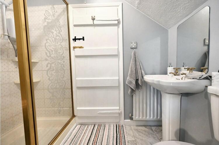 Interior - Inside, this cottage exudes charm and character. It features two reception rooms, one of which includes an open fire and beamed ceilings, adding to the cosy atmosphere. The breakfast kitchen comes with a walk-in pantry and a small utility area. Additionally, there is a ground floor bathroom and a rear hall with stairs leading to the first floor. Upstairs, you will find a delightful master bedroom with walk-in wardrobe, two further bedrooms, and a unique shower room that can double as an en-suite for one of the bedrooms.