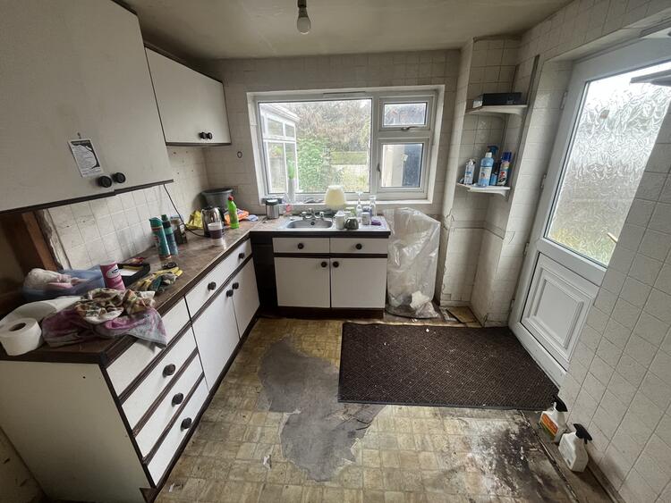 With base and wall units, sink, space for appliances, window to rear and door to side.