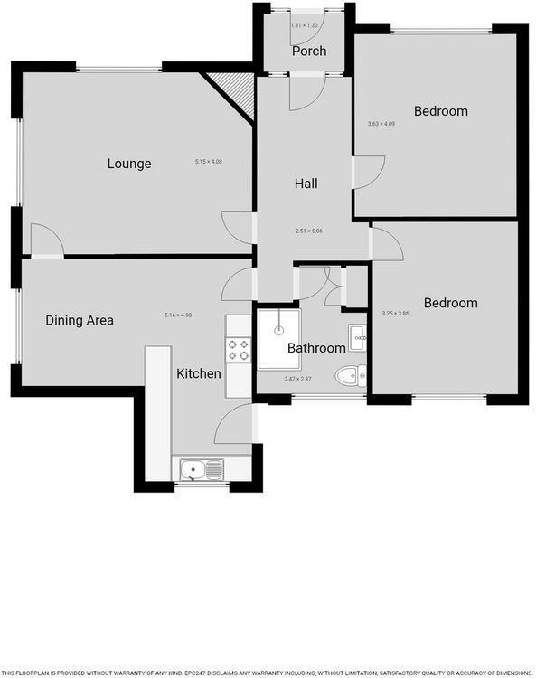 The property comprises of porch, entrance hallway, large lounge, L-shaped kitchen/diner, two double bedrooms and a shower room. Externally there are mature front and rear lawns. There is a further bonus of a detached garage providing off road parking.