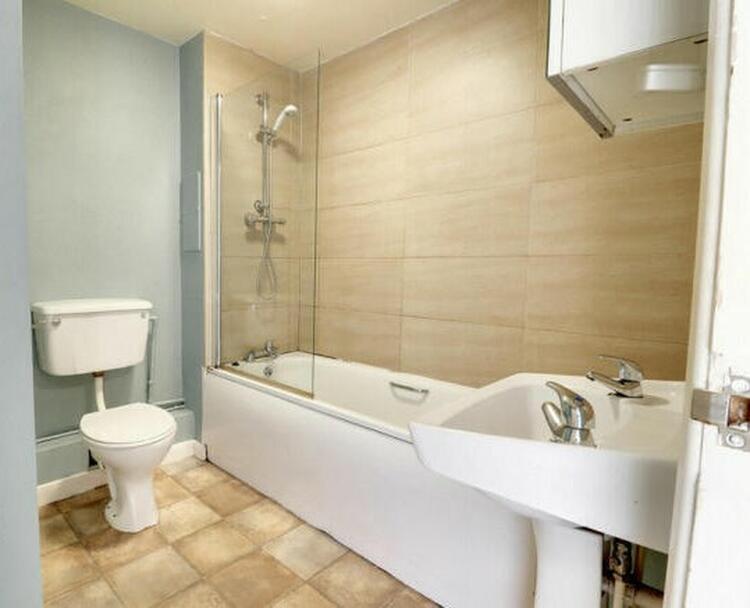 On the first floor is a large master bedroom with built-in wardrobes and a bathroom with shower over bath.