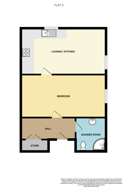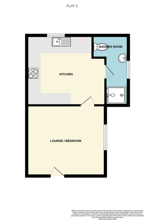 Lounge/Bedroom 3.92m x 3.54m. Kitchen 2.63m x 2.72m. Shower Room.