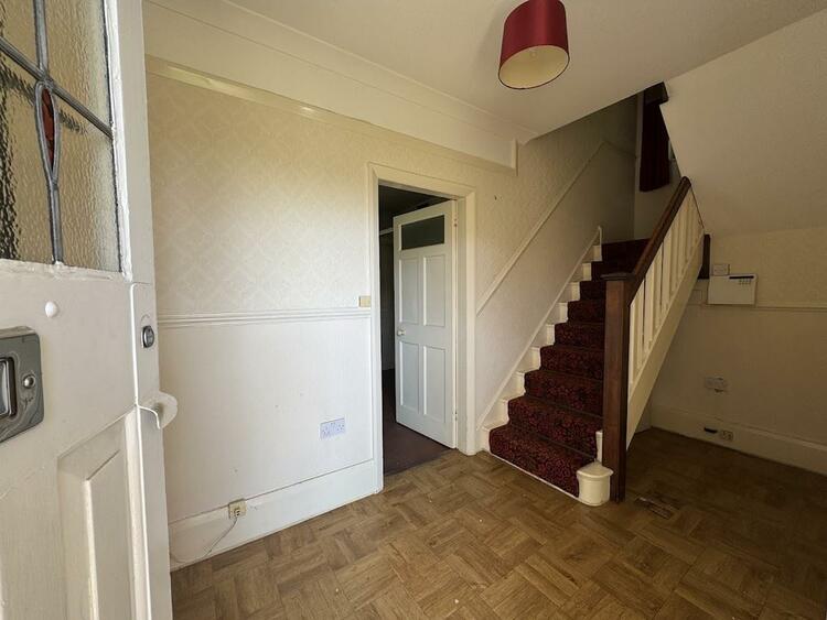 A spacious and welcoming formal entrance hallway with quality parquet style vinyl flooring, stairs lead to the first floor with useful storage area beneath, dado and picture rails, radiator. Access leads off to all ground floor rooms.