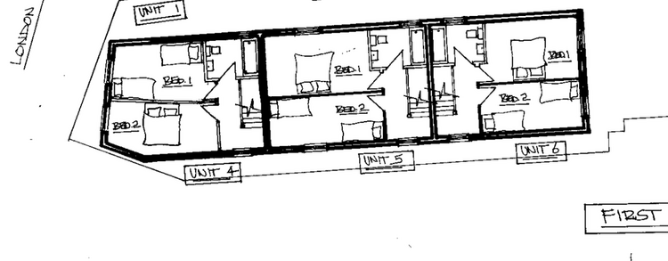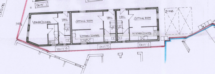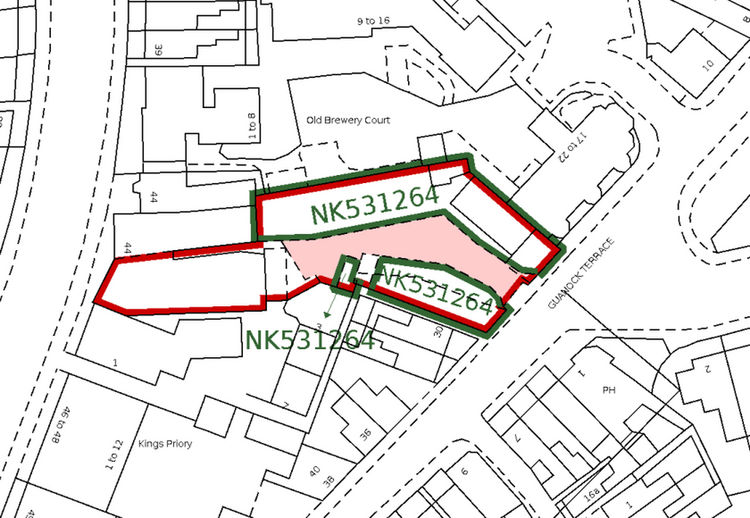 The site is shown in the plan attached but excludes all areas edged in Green. The Pink area will be shared driveway/access.