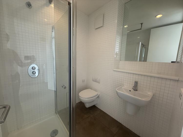 Stairs lead to the upper level, which opens into a breath-taking open-plan kitchen and lounge area, providing fantastic dual aspect views. The expansive living space features floor-to-ceiling windows that open onto a generous terrace, offering spectacular views of Nottingham Castle and the Lace Market. The master bedroom is also located on the upper floor and includes a modern ensuite shower room along with a dressing area.