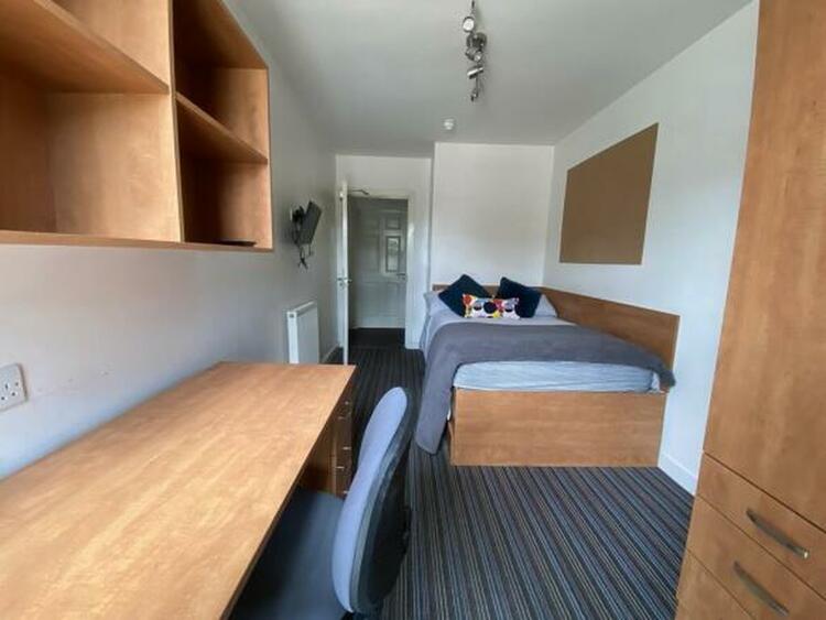 This modern student accommodation has private bedroom with shared access to kitchen/living/dining room and shower room.