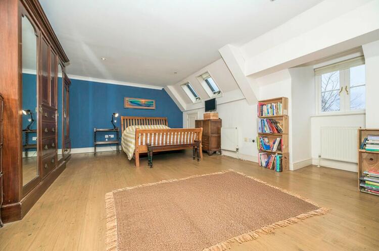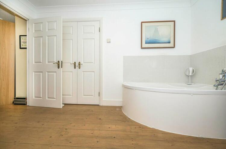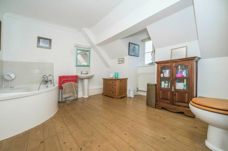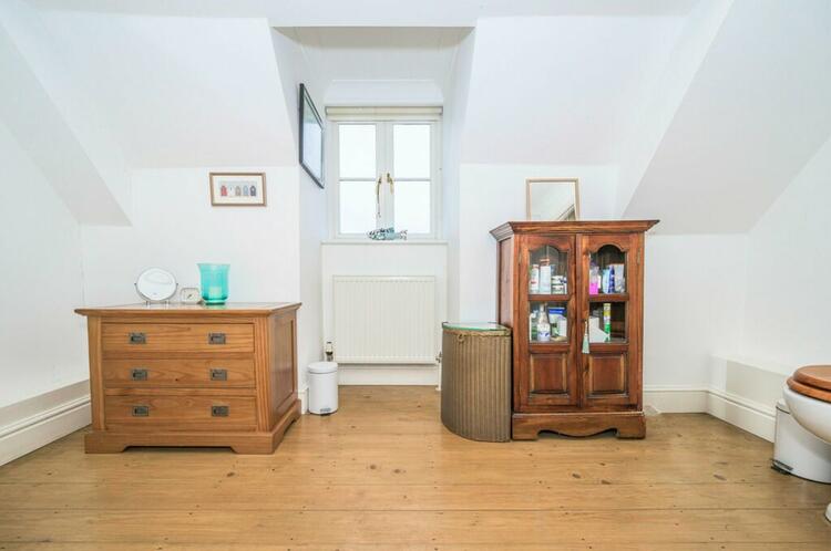 White painted balustrades and exposed wooden stairs lead to the second floor landing which in turn gives access to three double bedrooms, the main having a lockable cupboard and a double cupboard with shelf and hanging rack to the second, and a further bathroom with suite comprising bath, low level WC, hand basin, heated towel rail and airing cupboard with two slattered shelves. All bedrooms have exposed timber floors, exposed beams and sash windows.