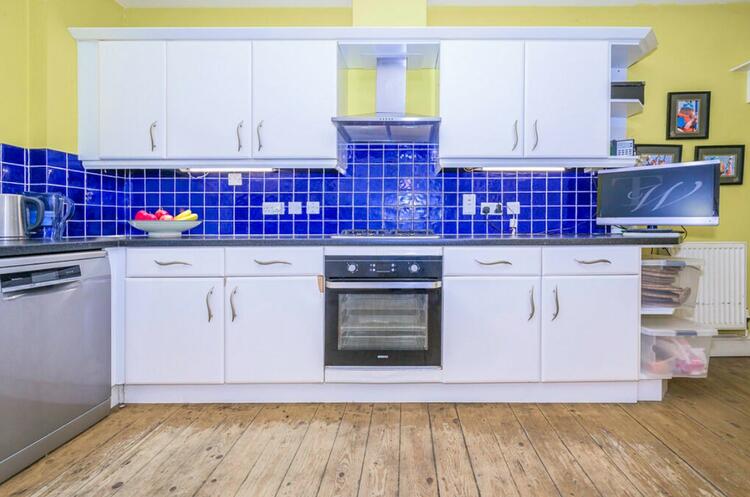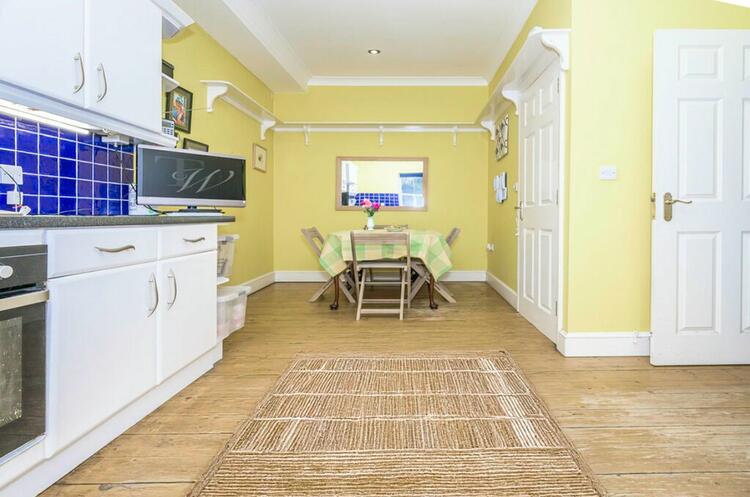 Doors leads to the kitchen/breakfast room, large lounge/sitting room and dining room that could be used as a fourth bedroom. There are stripped wooden floors in all of these room and original beams that add to the accommodations charm and character.