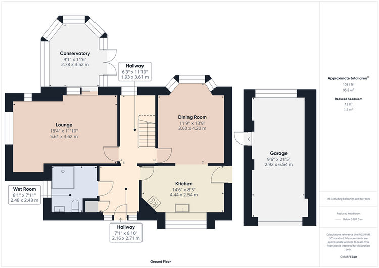 A welcoming hallway with built-in storage leads to the principal ground floor rooms. The spacious lounge opens directly into the conservatory via sliding doors, creating a light-filled living space overlooking the sunny rear garden. A formal dining room, with archway access to the fitted kitchen, offers a sociable layout, while a convenient downstairs wet room adds practicality. And a side door connects to a covered walkway providing access to the good sized single garage.
