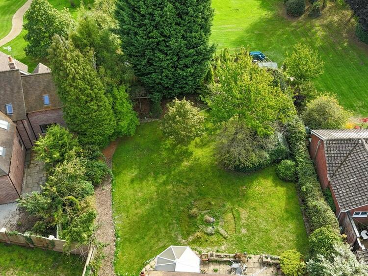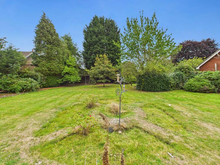 The property enjoys a wide frontage with a mature foregarden, established shrub and flower borders, hedge boundaries, and a private gated driveway leading to the garage. To the rear, the impressive garden is largely laid to lawn and enhanced with mature planting, a greenhouse, garden shed, and a patio seating area—perfect for outdoor entertaining or quiet relaxation.