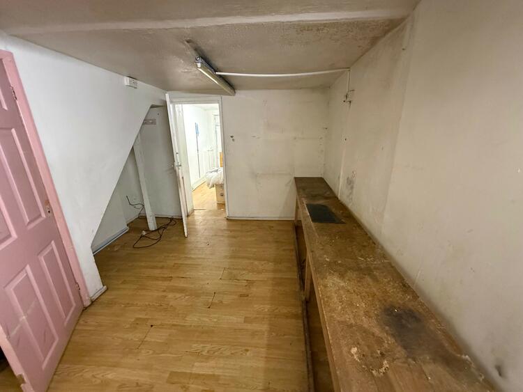 66 High Street is a former fruit and veg store and has been vacant several years. The main shop extends 192 sq. foot with wooden frontage. There is rear storage extending 135 sq. ft., behind this is a shower with WC. To the rear is a further storage area extending 140 sq. ft. The first floor comprises a shower room and storage. The second floor comprises a attic room with skylight.