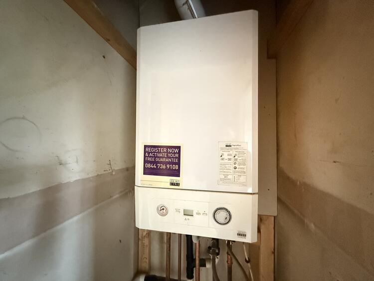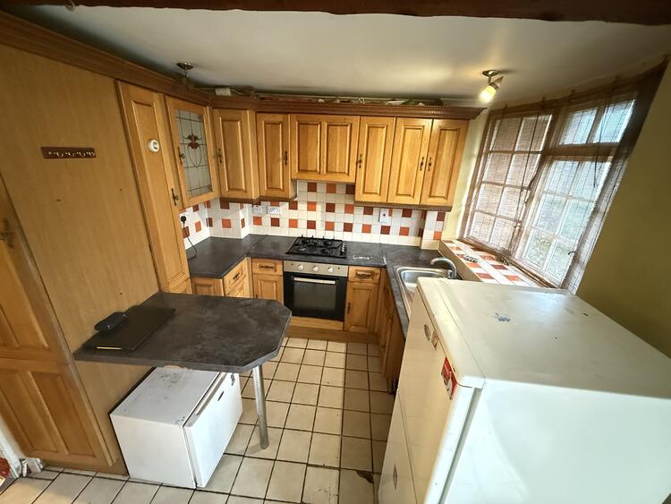 This bay-fronted two-bedroom townhouse presents significant potential. Although it requires a comprehensive modernisation plan, the property sits back in a quiet area and features both front and rear gardens, a detached garage, and a combi boiler.