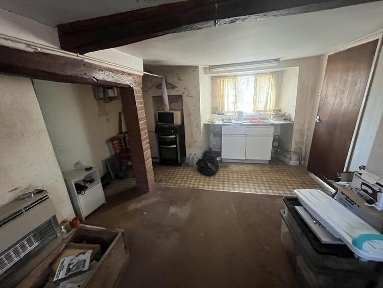 Sink, former Inglenook fireplace, windows to front and rear.