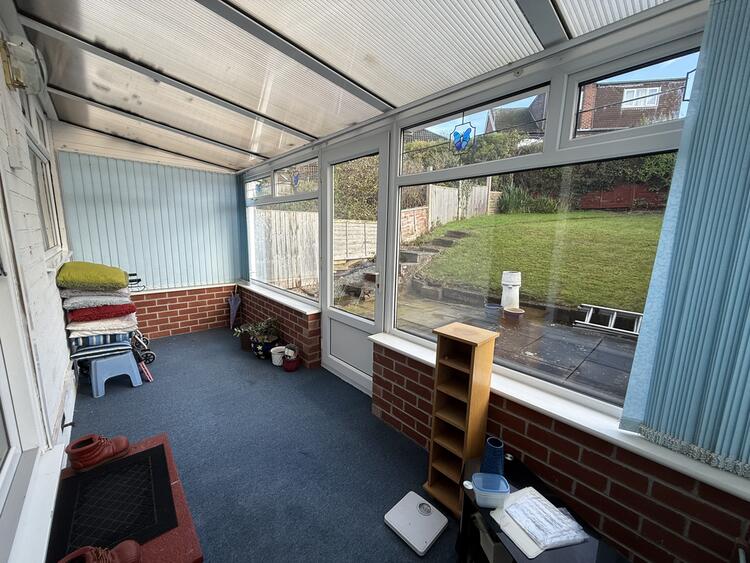 Internally, the property comprises a well-appointed fitted kitchen-diner, bay-fronted reception room offers a bright space with a gas fireplace. There is also a conservatory to the rear, providing additional versatile living space and garden views. The bungalow further benefits from one double bedroom with fitted wardrobes and a further single bedroom. A three-piece bathroom suite with a shower over bath.