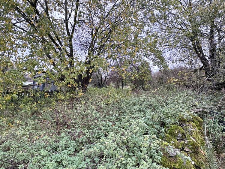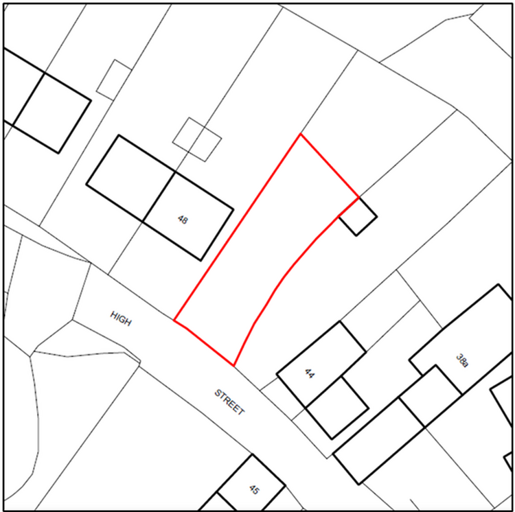 The plot is set back from the behind behind a stone built retaining wall and extends to approximately 0.0566 acres or thereabouts and is mostly overgrown and surrounded by a range of specimen trees.