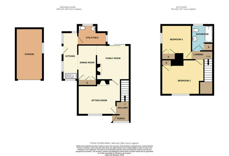 A two bedroom semi-detached home in need of modernisation throughout but offering ample potential. The property is set behind a gravelled driveway which provides off road parking, garage and accommodation to comprise of entrance porch, hallway, lounge, dining room, breakfast room/lean to kitchen and downstairs WC. To the first floor there are two bedrooms and a family bathroom.