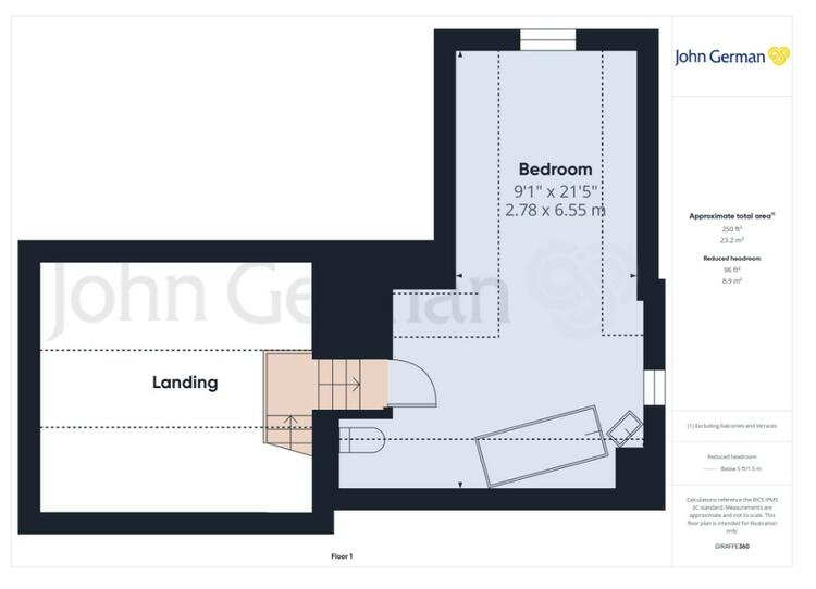 First floor small landing area off which leads a spacious bedroom which incorporates a roll top freestanding bath, wash basin and a folding screen to a WC.