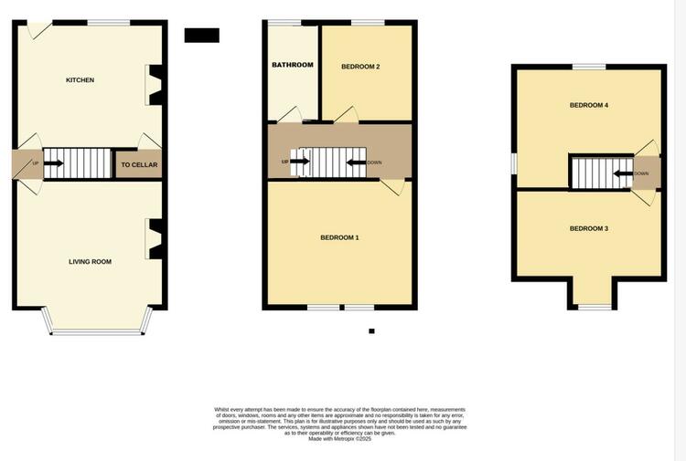 The accommodation comprises and entrance hall, kitchen / diner and bay windowed lounge on the ground floor. Two bedrooms and the bathroom on the first floor and two further bedrooms on the second floor. Outside there is an enclosed rear yard.