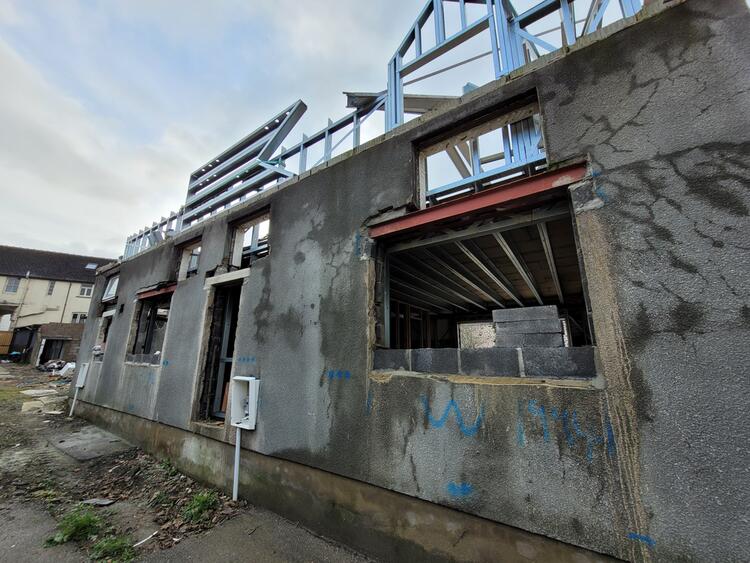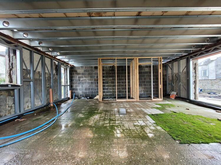 Steels fitted in Units 3 + 4 ground floor include floor joists