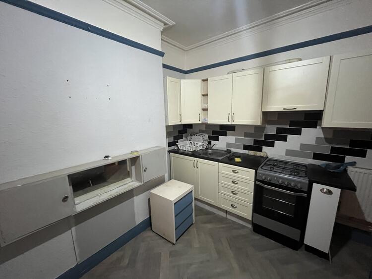 With kitchen area and bay window to front.