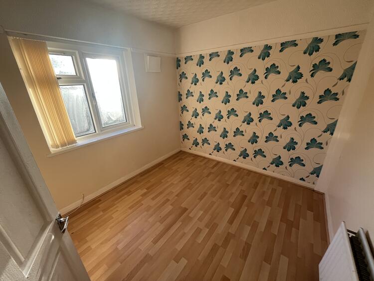 With radiator, over stairs cupboard with Worcester combi boiler. Two windows to front.