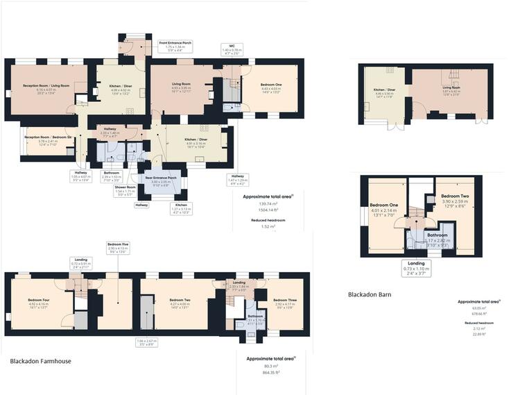 The main property briefly comprises of rear entrance porch, kitchen diner, shower room, living room and bedroom on the ground floor, whilst on the first floor there are two bedrooms and a bathroom. In the second part of the main house which is currently utilised as a holiday let but could be part of the main house the accommodation comprises and entrance hallway, bathroom, bedroom, living room, kitchen diner, entrance porch on the ground floor with two bedrooms on the first floor. To the front of the property, there is an enclosed garden bordered by mature hedge and is laid to lawn.