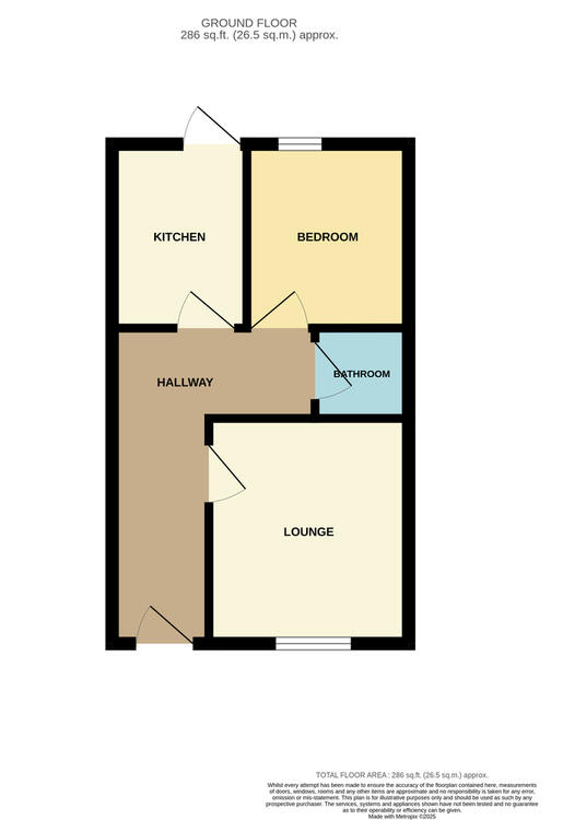 The property is ground floor and comprises of entrance hallway, large bay fronted lounge, kitchen with door to garden, double bedroom and bathroom. Externally is a courtyard area.