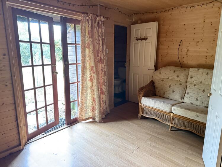 To the exterior, there is a sizable courtyard at the front providing parking for several vehicles, double gates on the right side of the property, and a single gated access on the left that leads to a generously sized garden. Additionally, there is a large summer house with an ensuite and a separate garden shed.