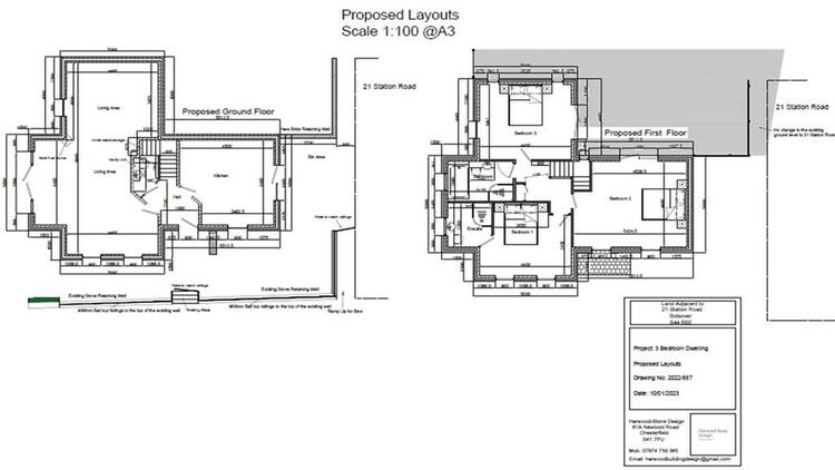 Full planning permission granted for a three bedroom detached property, measuring approximately 1552 SqFt. Dated January 2023.