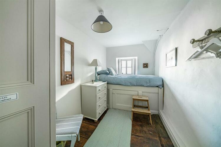 Deep sill window to side elevation with bespoke, wooden captains bed below, built-in storage cupboard which makes an ideal owner's lock up.