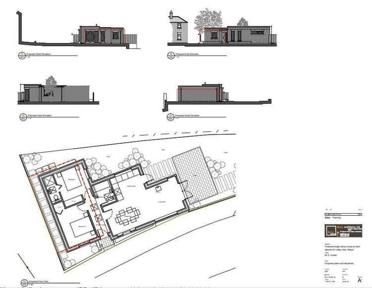 The plans provide for an modern bungalow development fronting Canada Street providing off street parking for two vehicles, open plan kitchen diner, two bedrooms and landscaping g with patio area.